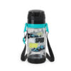 La botella con sorbete , tapa abatible y correa ajustable.